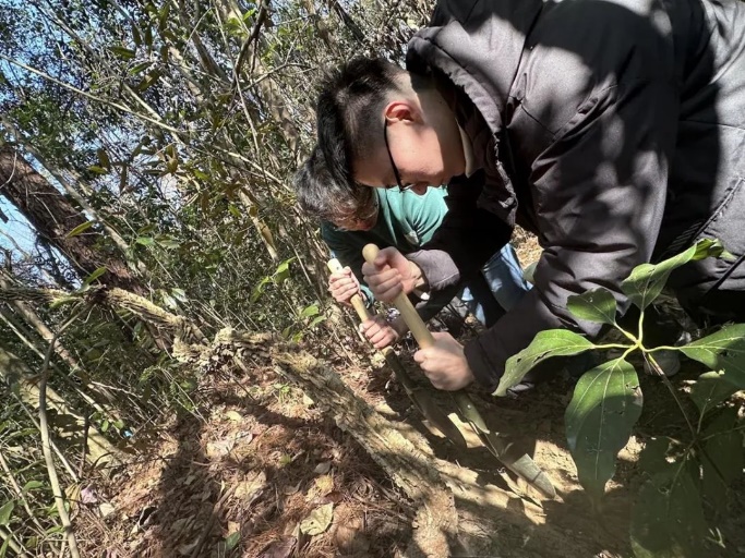 (3) 杨溪河线由苏琦老师带队,对河流阶地形态、断层影响及河床沉积物粒径展开研究,剖析流水侵蚀与沉积作用塑造地貌的动态过程,郑影华老师在竹林中挖掘土壤奥秘,陆海波老师则解读观测场仪器数据,助力同学们理解森林碳 - 水 - 能量循环的精妙平衡,从河流到森林,全方位解读自然地理的运行机制。