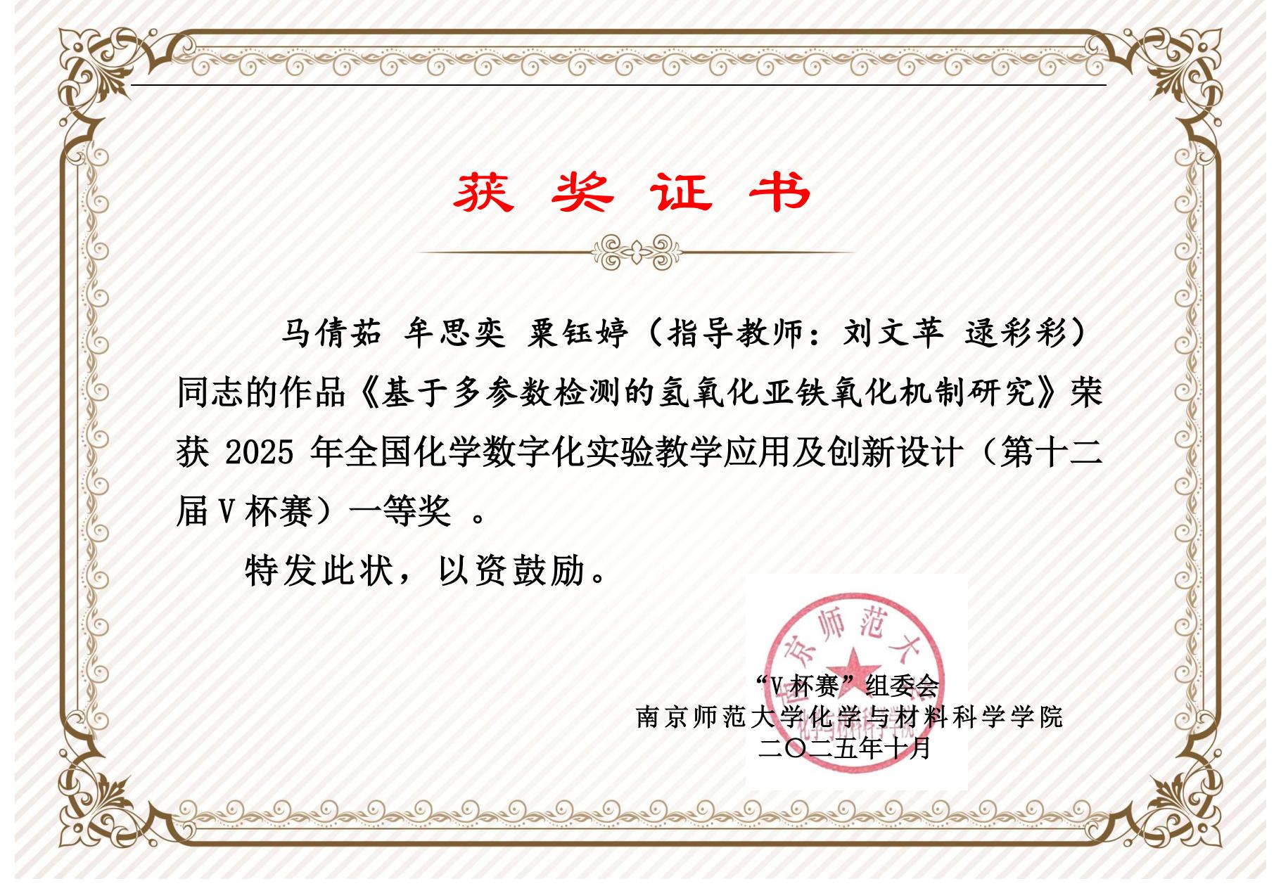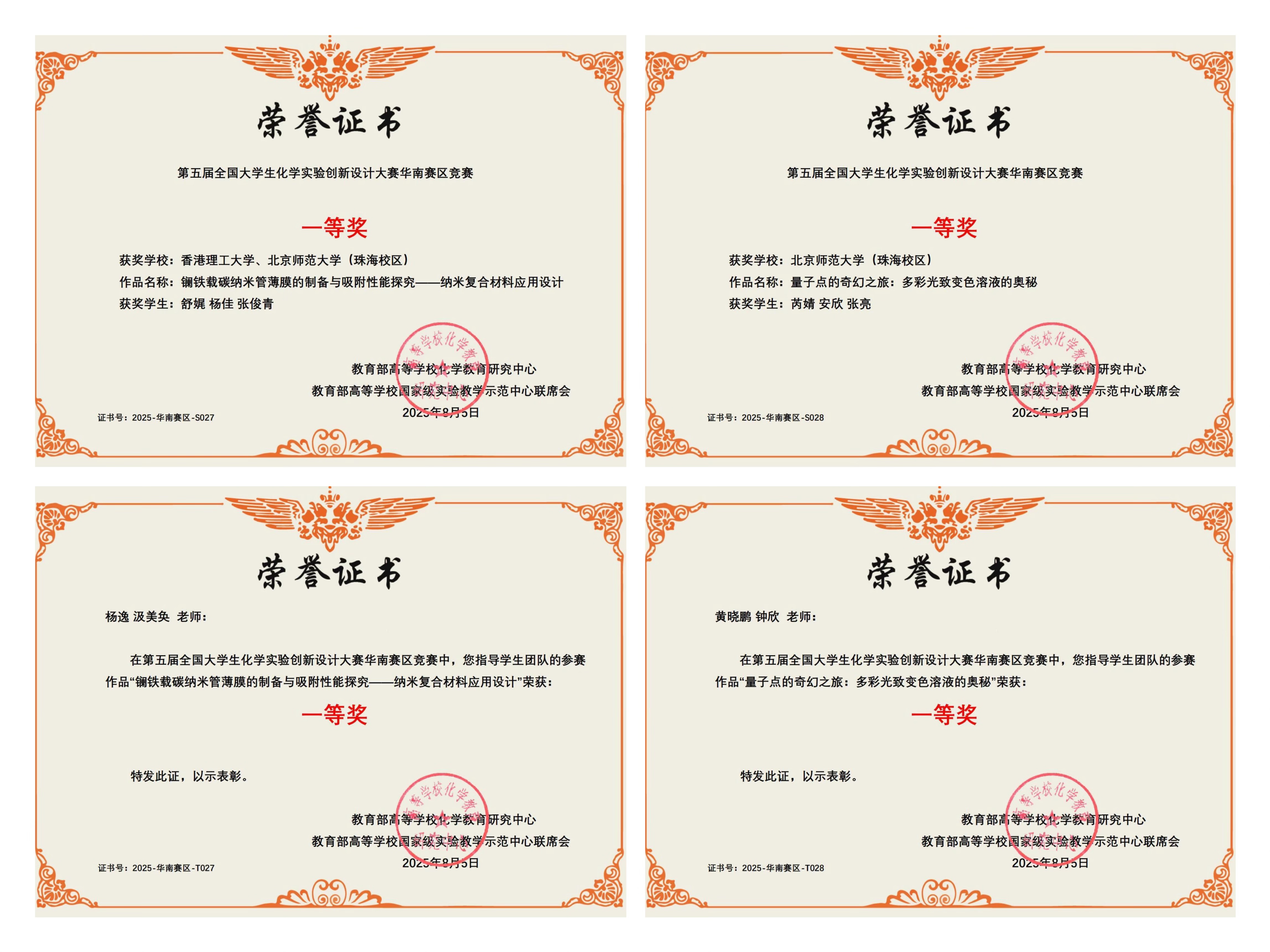 北京师范大学珠海校区学子在2025年全国化学数字化实验教学应用及创新设计(第12届V杯赛)中荣获佳绩