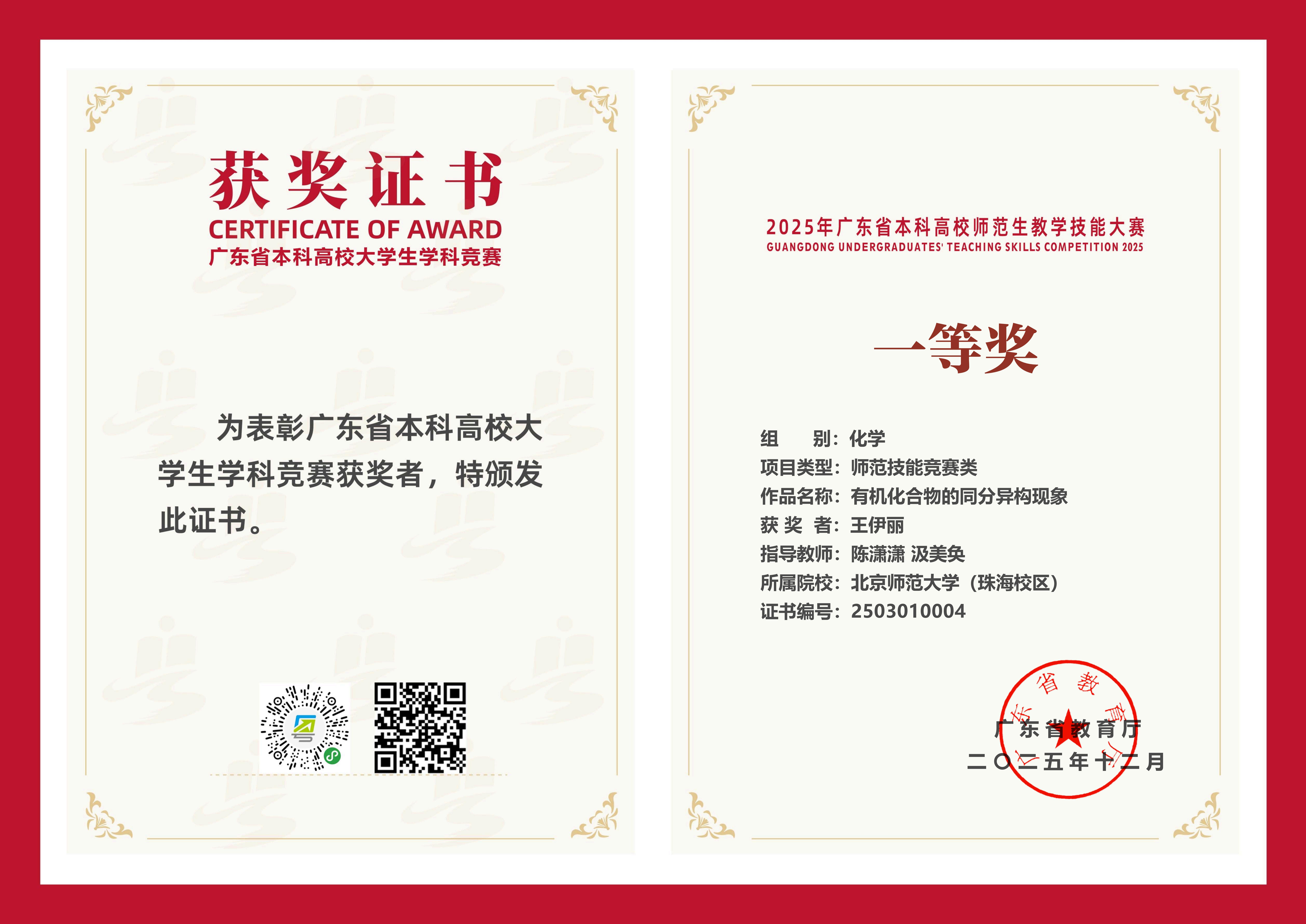 北京师范大学珠海校区学子在第十四届高校化学师范生教学技能测试与交流展示活动中获奖