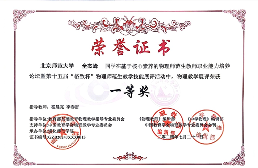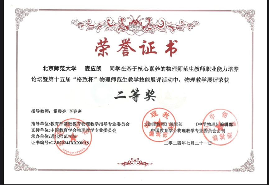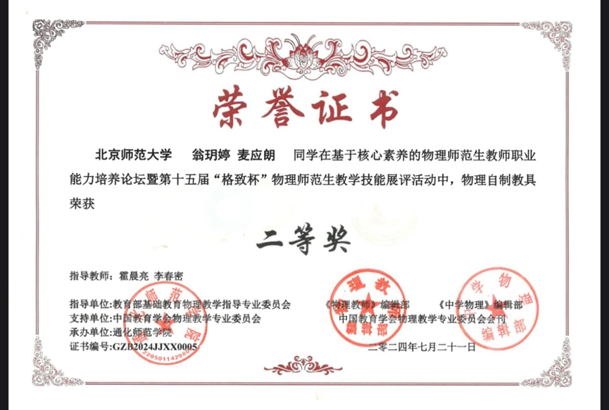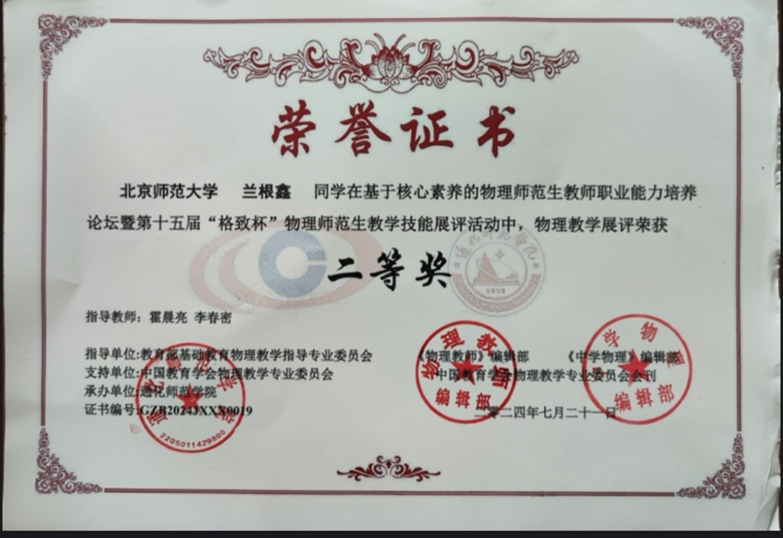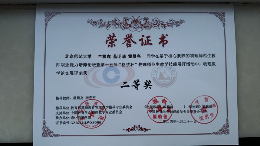 兰根鑫 蓝明浦 霍晨亮,物理教学论文二等奖