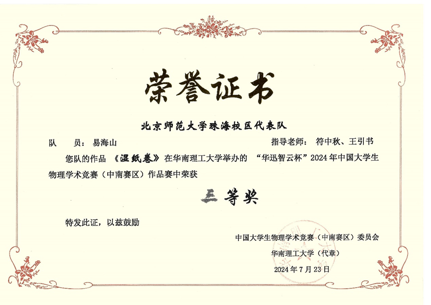 2024年中国大学生物理学术竞赛(中南赛区)作品赛一等奖、三等奖